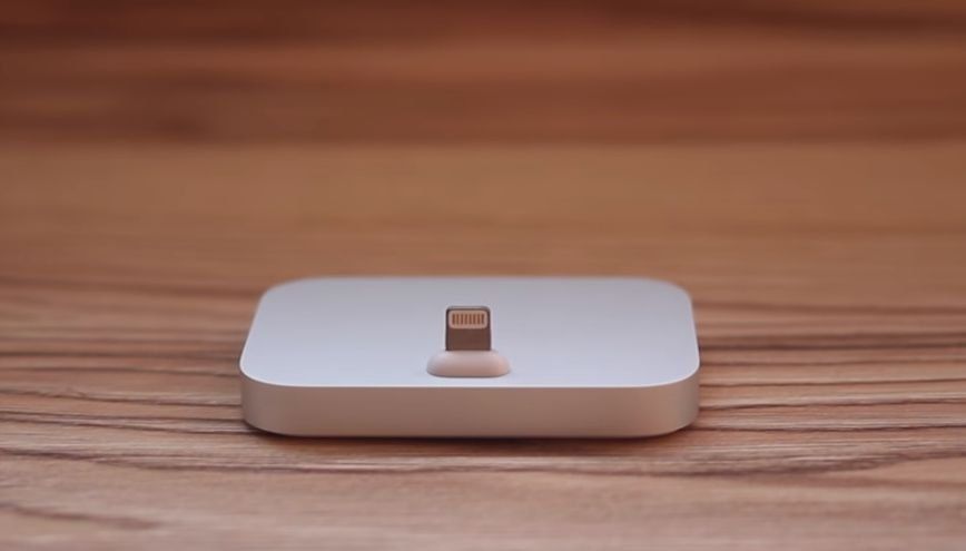 The station looks extremely minimalistic. It is a simple plastic or metal stand with a lightning connector and a 3.5 mm headphone jack. It can be connected to an outlet or to a computer and the gadget can be installed on top in a vertical position at a slight tilt.