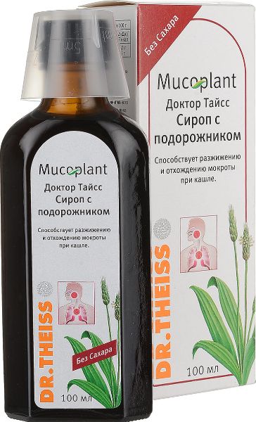 This syrup with plantain extract is designed to dissolve the formed phlegm and quickly remove it from the human body. Additional ingredients include sugar beet syrup, peppermint essential oil, water, potassium sorbate, honey and glucose.