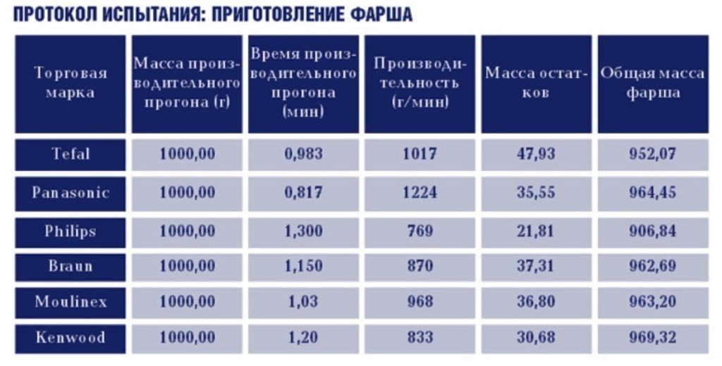 The laboratory of verification and testing of Rostest-Moscow with the utmost rigor carried out comparative and research tests of the most massively presented electric meat grinders. The comparative analysis was carried out among six leading companies in the production of mid-range kitchen appliances: Panasonic, Braun, Kenwood, Philips, Tefal, Moulinex.