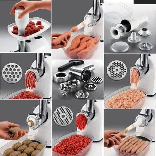 There are nozzles for the production of noodles, sausages, sausages, kebbe, curly cutting vegetables, juice extraction.