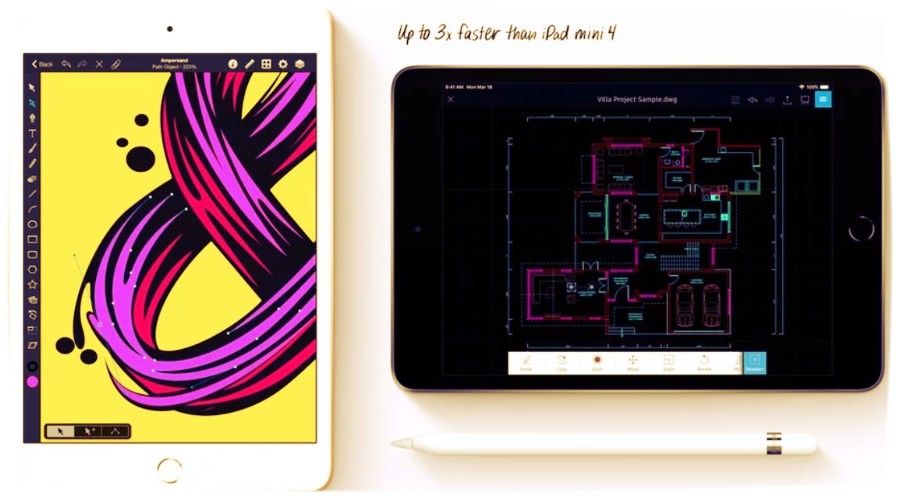 Like the above reviewed novelty, the device was equipped with the A12 Bionic chipset, supports the proprietary Pencil, but in addition, users are given the opportunity to connect the Smart Tablet Keyboard to the device, which is not the case for Mini 2026.