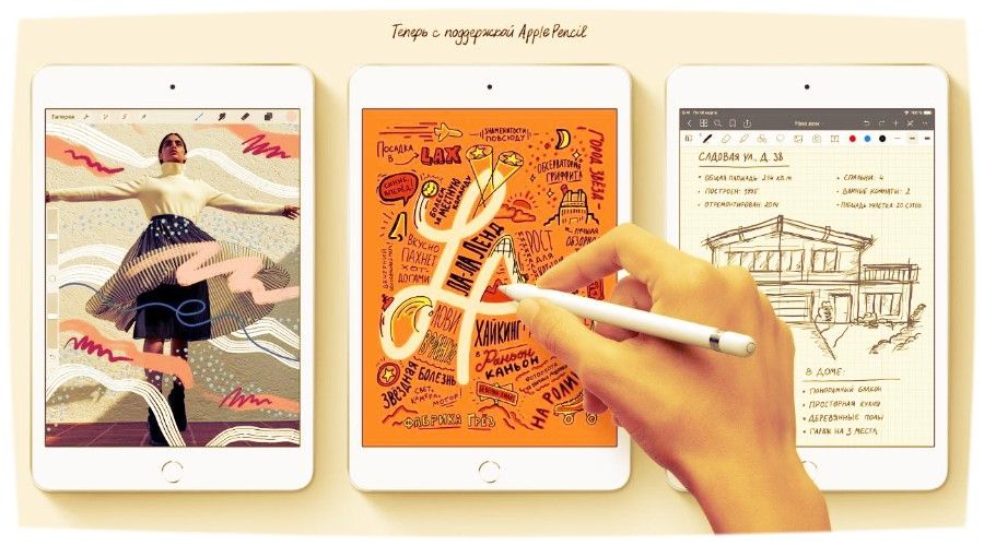 It has already been said above that the novelty supports the proprietary Pencil, and this is great news.The fact is that the pen makes it possible to interact with the device on a completely different level, in the most direct sense of the word - for creation. You can draw, and write and multitask more comfortably with the Apple Pencil than without it.
