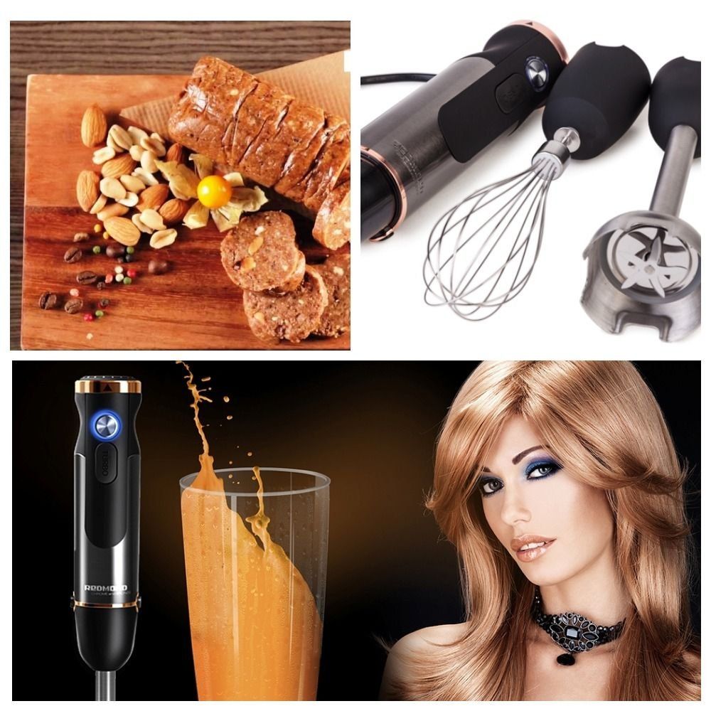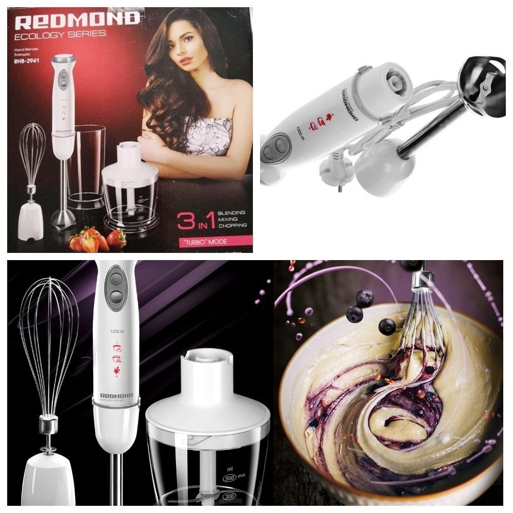 If the model of the hand blender is equipped with a chopping bowl, it becomes a combination type (REDMOND RFP-3950). Then it has advantages and disadvantages of both types.