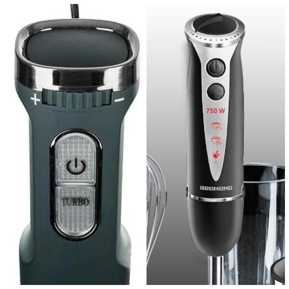 To make a cocktail, you don't have to turn on the turbo mode, buy a powerful car. Quite the opposite - excessive agitation will ruin the drink. The meat may not turn into minced meat, but into pate. Therefore, Redmond provides several speed modes and the "turbo" function. There is a fixed option and an adaptive one. When fixed, there can be up to 15 speeds, but when switching the device must be stopped. In the second option, you have to hold the button or adjustment knob during operation. From the force of pressing in the course of work, the revolutions will increase or decrease.