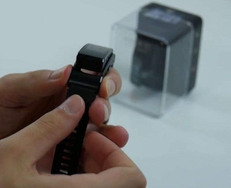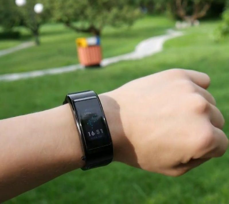 The device was released in three variations: Active, Classic, Elite. According to their characteristics, they are absolutely identical, and their differences are only in the straps. The Classic comes in leather and the Elite comes in metal. Huawei TalkBand B5 Active got a silicone strap in black and ice gray. Its length is adjustable from 14 to 21 cm depending on the wrist. The 18 mm wide strap is soft, comfortable, non-allergenic. It does not cause any discomfort, not only during the day, but also during sleep.