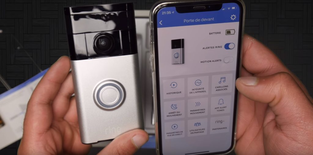 There is no receiver in the kit, since the Ring Video Doorbell communicates directly with the smartphone. There is an infrared light. A 5200 mAh battery (one year of battery life) is inserted into the case. Recharging takes 11 hours.