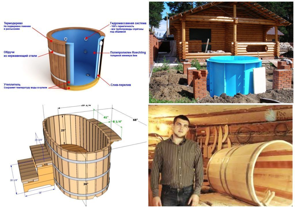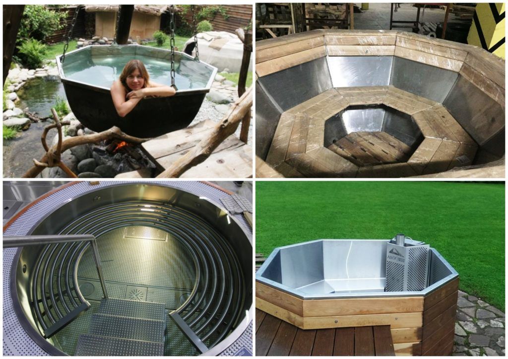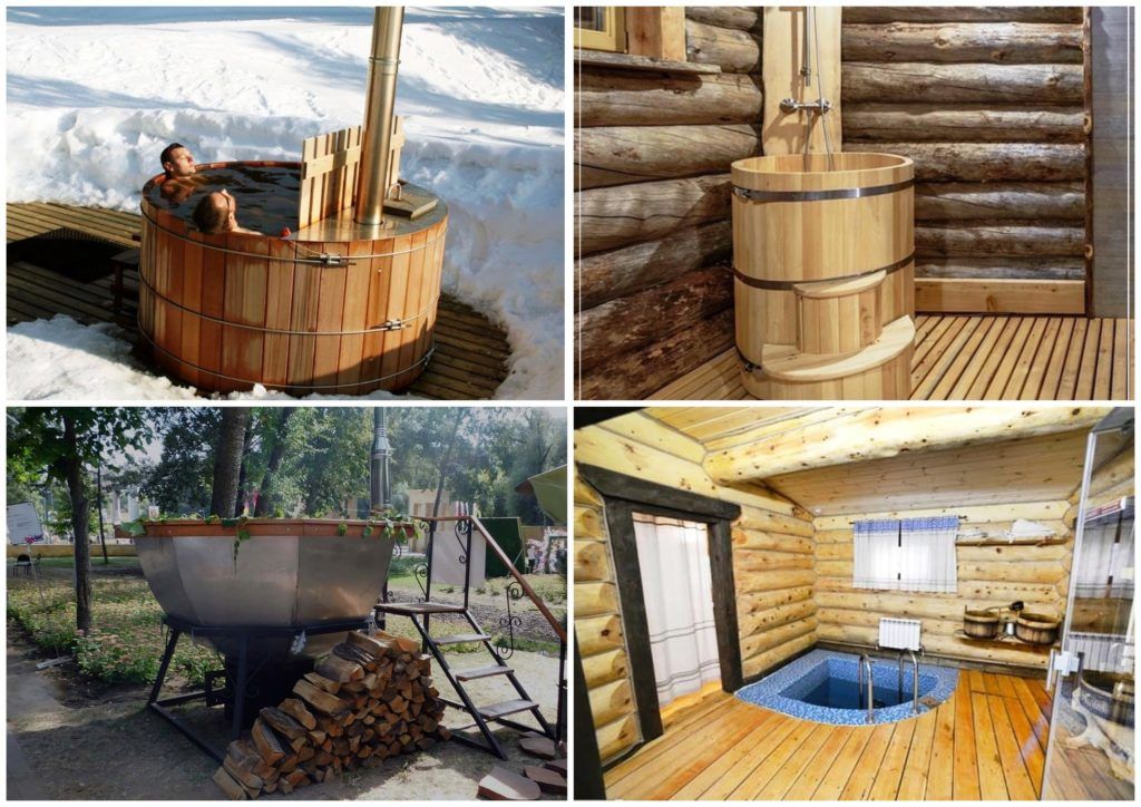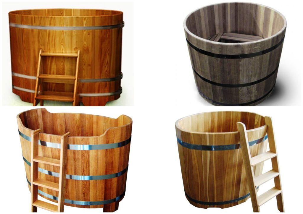 In appearance, the containers are different, it depends on the design, height-width, materials. It can be designed for two or three, there are twin models, concrete barrels, micro-pools. Material - from wood to concrete, it depends on the imagination and the price tag. You can use most of the modifications in the country, in a cottage (private house), in the yard and even in an apartment.