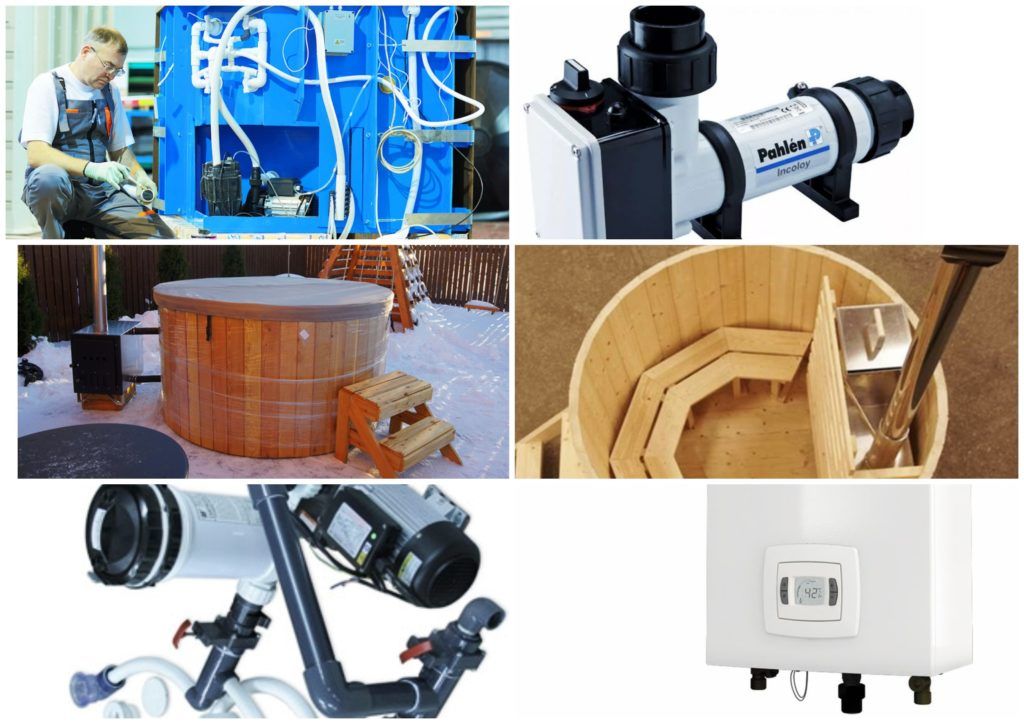 | Equipment | Capacity Additionally: drain (overflow), filter, air-hydromassage systems, stairs, lighting, seats (wood, plastic), exterior decoration |
