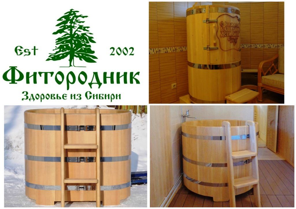 The furniture company, which makes furniture, accessories for baths and saunas, has been operating in the Moscow region (Elektrougli) since 1998. Modern technology: sawn grooved rivets that are glued (spliced), tightened with hoops, covered with polyurethane varnish. The main raw materials are oak and larch. The containers are suitable for baths, saunas, outdoors (there are models with stoves).