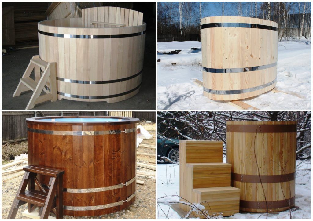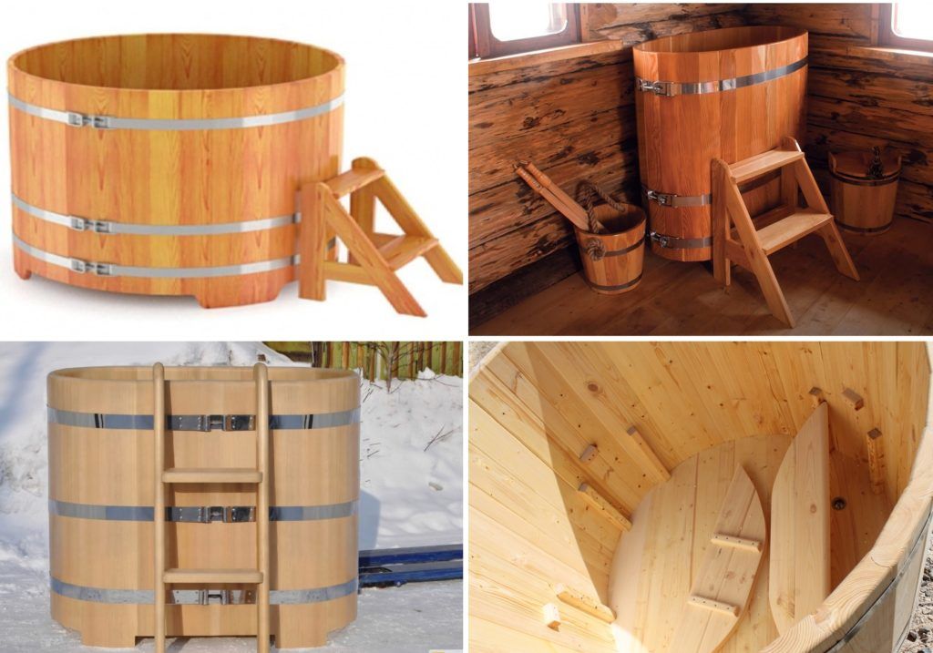 Cedar, oak, larch barrels do not rot. The containers are easy to wash and clean, they can withstand any temperature suitable for bathing. The tree is said to release essential oils to aid relaxation and wellness. The aroma of wood cheers up and strengthens the immune system. There is nothing more useful for health than wooden tanks.