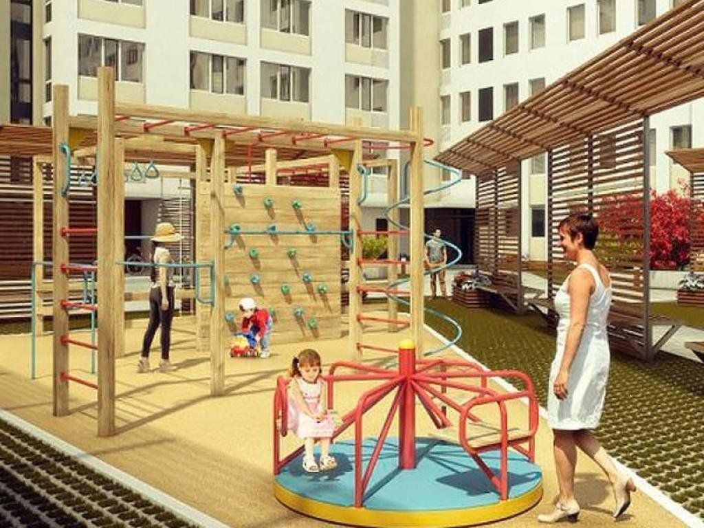 The Novatorov quarter is a private residential complex of Yekaterinburg of the European level. It is located in the city center on Novatorov street. The play area here was developed by the Danish company KOMPAN, which specializes in this area. The company's engineers and psychologists developed every element, from a swing to a climbing frame, resulting in an interesting and varied project. The area is divided into zones according to the ages of the children. For toddlers, the play area develops motor skills and coordination of movements. For teenagers - sports courts with special cover for playing football and basketball. In the dark, the area of the game complex is beautifully illuminated, it is nice to just walk or sit on a bench here.