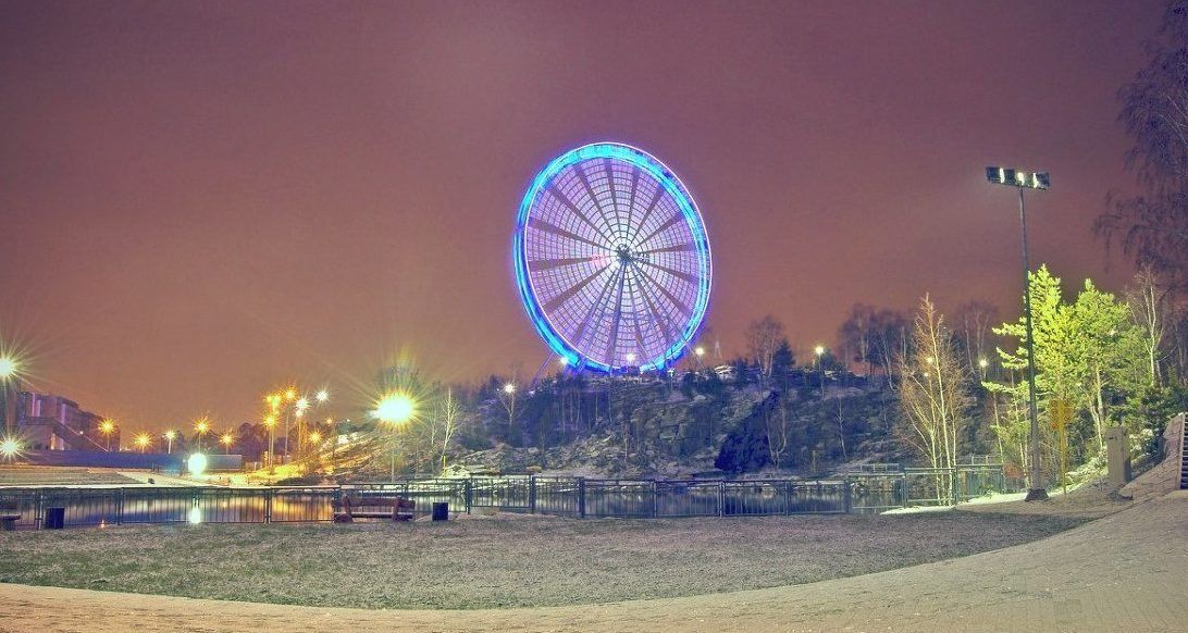 SEC "Raduga Park" is located at st. Repin, 94, which is far from the city center. But, despite this, many residents bring their children to rest here in winter and summer. A high (50 meters) Ferris wheel with closed booths is installed in the open square near the center. Wheel illumination in the dark is striking in its magnificence. The wheel works all year round. Nearby is a beautiful natural reservoir.