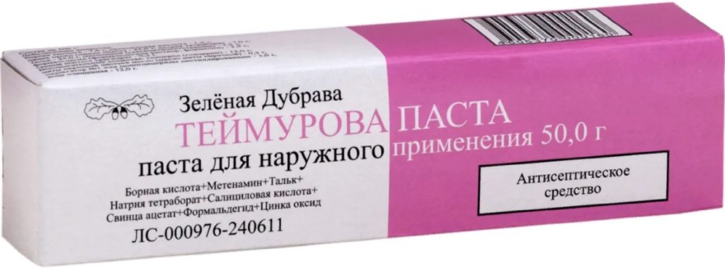 Of all the drugs included in the list of drugs in the rating, this paste has the most complex composition. The main ingredient of the medicine, which is a powerful antiseptic, is boric acid. Further included in the composition: