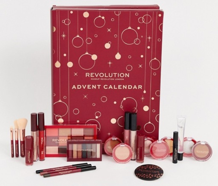For example, the Revolution calendar includes 24 products, among which a lover of decorative cosmetics can find everything they need: eye shadow palettes, blush, bronzers, lipsticks.