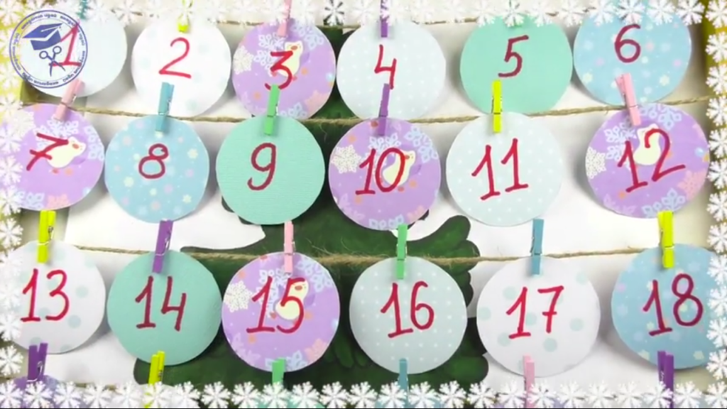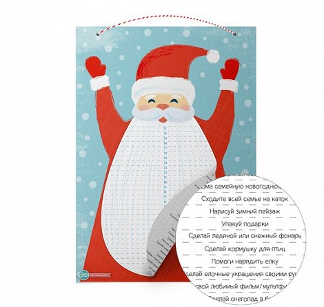 Day after day, children tear off pieces of the beard of the character depicted on the poster and do what is indicated on them: they compose a letter for Santa Claus, decorate the house for the New Year holidays, paint winter landscapes, make bird feeders, and prepare treats.