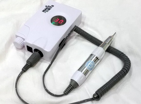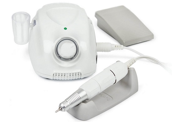 A decent budget option is the TNL MP-68. This machine is perfect for manicure or pedicure, and also performs high-quality correction of artificial nails. The device removes the cuticle well, performs grinding at different levels, processes the nail plate. The ergonomic handle is very comfortable and adjusts the speed well. No vibration, minimal noise. Ideal for home use as the cord is long and the handle is lightweight. Also included is a pedal to make the TNL MP-68 easier to use. The package includes 4 cutters: an analog of a cutter, a bullet for cleaning under the cuticle (and for rollers), a foot grinder, a cutter for processing feet and an analog of a flame cutter for raising the cuticle. The attachments are easy to replace and securely attached. Power is 21 W, voltage is 220 W, rotation speed reaches 35 thousand revolutions per minute. The manufacturer issues a six months warranty.