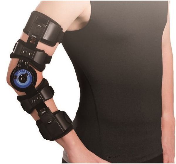 Such devices belong to orthoses, but in some cases they can be used to solve other problems. The elbow brace additionally covers a large area of the shoulder and forearm. The product is also equipped with rigid ribs with a lock and an expandable limb sleeve. There is also a swivel attachment that allows you to set the range of motion. So that a person does not create efforts to keep the arm bent, a strap is provided over the shoulder. Traumatologists prescribe wearing the brace as a replacement for a cast and a kerchief.