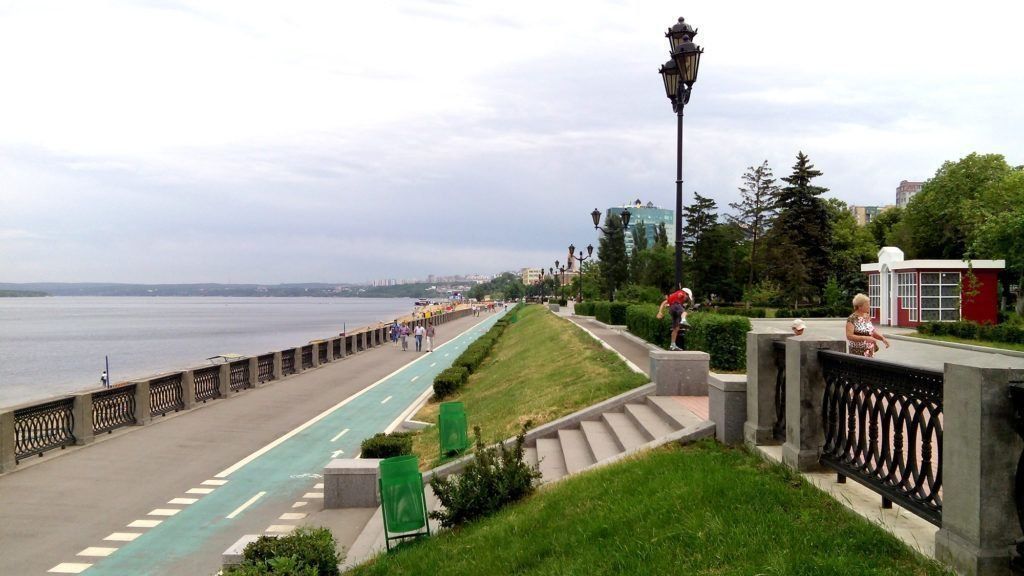 This is a beautiful place where residents of the city, athletes and lovers of a healthy lifestyle gather. The embankment is divided into four parts and descends with its terraces to the Volga. This is the longest and most spacious "treadmill" - its length is almost 5 kilometers. Thanks to this, you can freely run without fear of disturbing passers-by. While running, you can admire beautiful views, fountains and sights, of which there are quite a few - the Ladya stele, the Sukhov monument and many others. This is a great place to spend time, take a walk or go for a run. The paths for pedestrians are paved with tiles, in addition, the embankment is equipped with bike paths, sports grounds and equipped beaches.