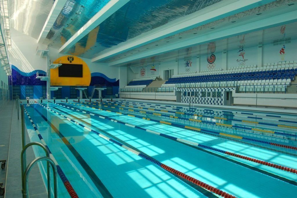 The pool has different depths of 1.8 m and 1.2 m and is equipped with 8 lanes. For water purification, a combined method is used using traditional chlorine and ultraviolet radiation, which reduces the concentration of harmful substances in the water.