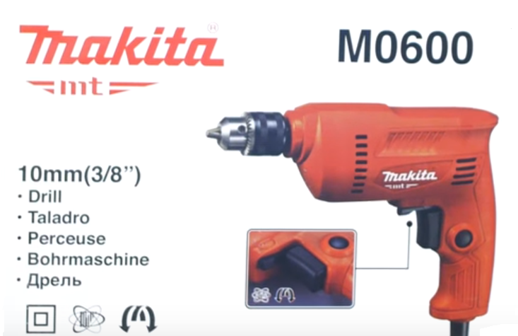 | Makita M0600 | Shockless, cartridge - key, power 350 W, maximum rpm - 3000, wire length 2m, drilling diameter for wood - 20mm, for metal - 10mm, weight - 1.2 kg, features: reverse, with speed control. | 2300 rubles |