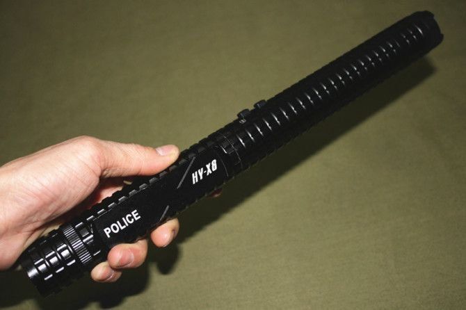 This piece is intended for professionals. Such weapons are often used by police officers. A powerful beam of light blinds the enemy with lightning speed, and an electric discharge knocks him down. Long-term performance is guaranteed by the built-in battery. The metal body makes the product durable. Price $ 19.