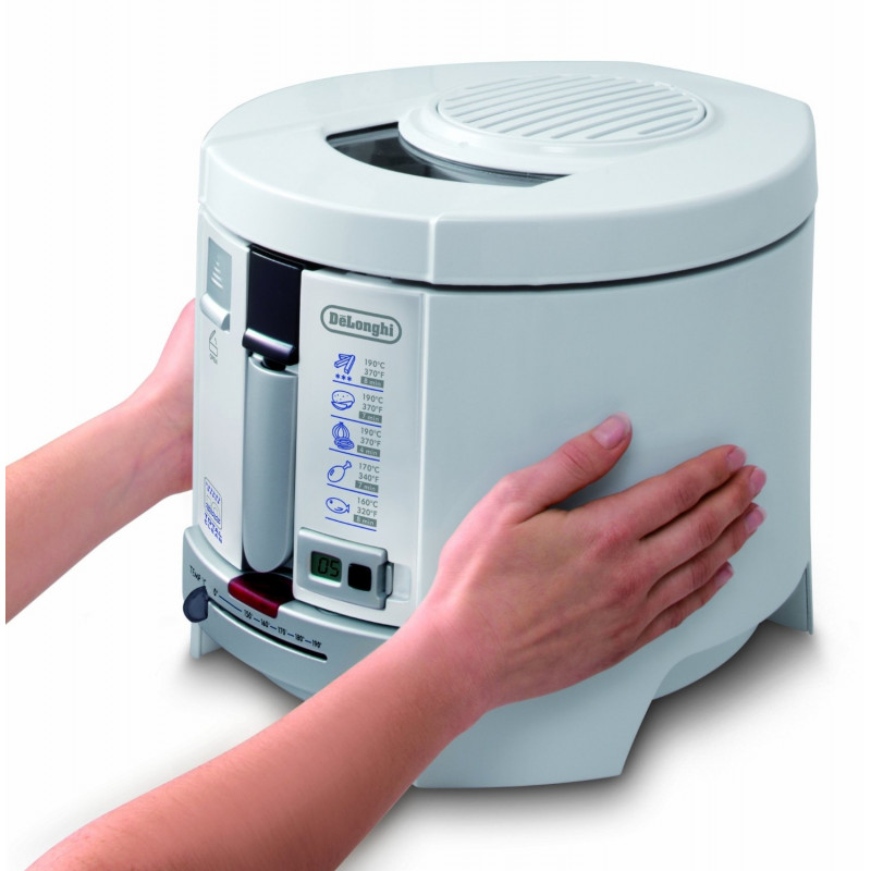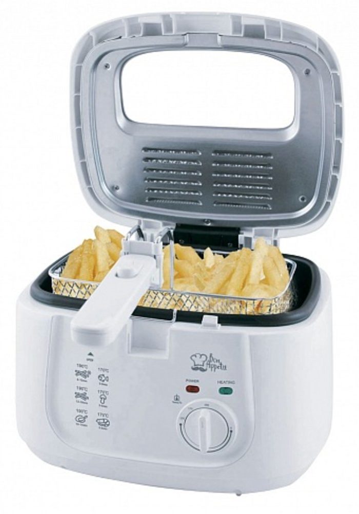 The model has a white coating and fits into any design, has earned a large number of positive reviews. Despite its low cost, the deep fryer is made of durable material and will last a long time. The power of the device is 18000 W, the volume of the bowl is 2.5 liters. Therefore, the kitchen appliance will be the perfect companion for a large family. The control is carried out using a special rotary toggle switch, the user will be able to see the end of cooking with the help of two indicators. The special basket is equipped with a removable handle. The handle material does not heat up, so users are protected from burns. During the use of the fryer, foreign odors do not get into the room, since the device has special filters.