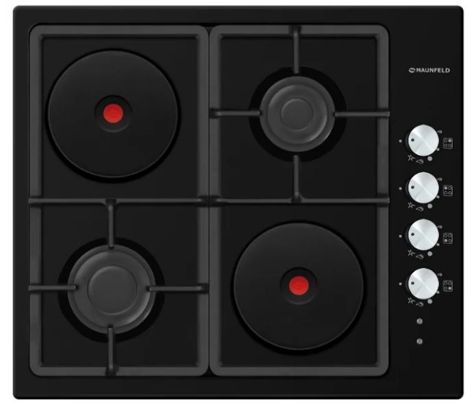 A very beautiful independent glass-ceramic panel of the combined type. Looks rich in any kitchen. Value for money at the highest level: multifunctional, therefore worth it accordingly. One half of the 4-burner hob is electric, the other is gas. Body color - black, no frame.