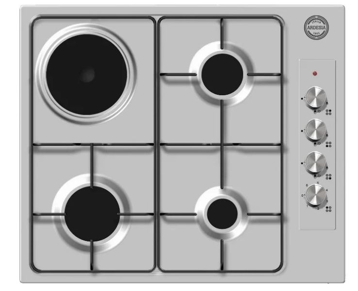 Model with electric ignition, independent installation system. The stainless steel construction with cast iron grates in silver color will suit any kitchen interior.