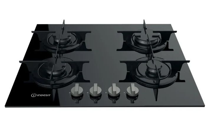Gas on black glass. It has a modernized grill design, or rather its absence, stable elements are located only above the burners.