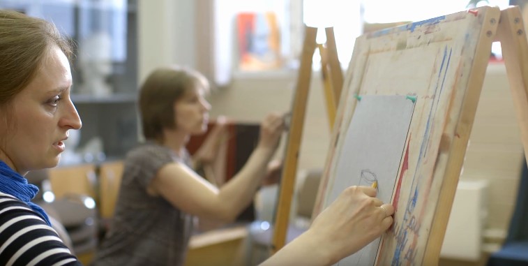 Workshop. When choosing an art school, you should pay attention to the presence of a workshop. If instead of it there are ordinary classrooms where students work, sitting at tables, and not at easels, then it is hardly necessary to choose such an institution. In the most popular art schools there is a spacious, light workshop where you can draw, standing behind an easel, having the opportunity and a place to step aside, inspect the work from the side. A workshop is not just a beautiful attribute of an art school, it allows you to competently and professionally develop skills and foundations of mastery.