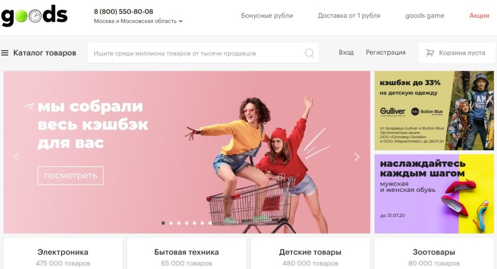The Marketplace has collected only the best online stores that have passed the quality check. Moreover, the Goods expands their quantity every year so that the buyer has even more choice. In addition, there are constant promotions on the platform, so making purchases here is not only convenient, but also profitable.
