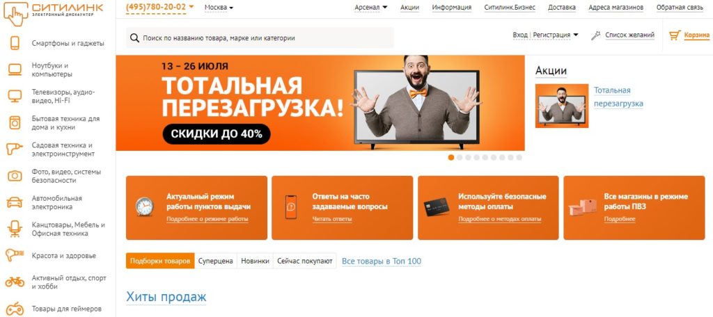 The store cooperates with many world and famous brands. More than 70,000 items of various equipment, electrical appliances, and other goods were offered to buyers.