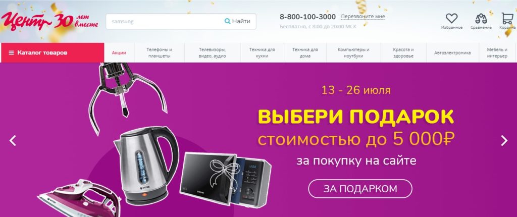 The largest retail chain with a high volume of sales of household appliances and electronics. Price, service does not differ from online and regular store.