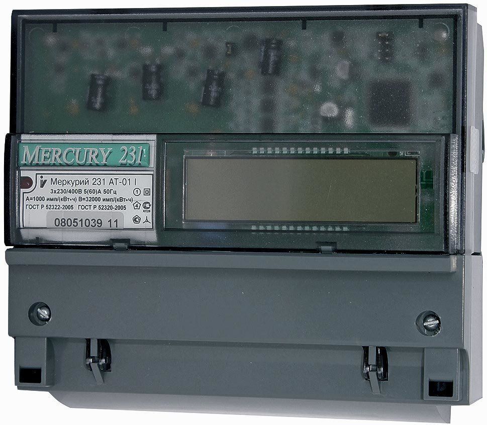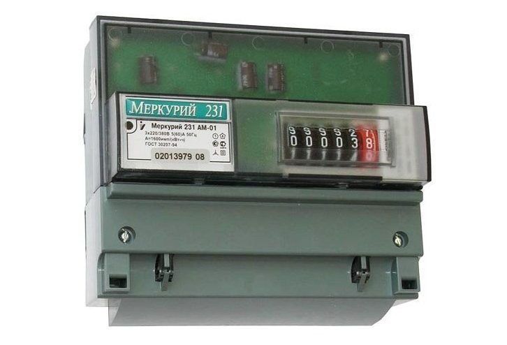 Mercury 231 AM-01 is a commercial modification that allows you to keep track of dynamic electricity in one direction. The process is carried out by a mechanical type of device in a three- or four-link AC network. It works both independently and in the ASKUE system. The counter drum only rotates in the increasing direction. LED backlight helps to read energy information. Control over the amount of consumed energy is carried out in a single tariff mode. DIN rail mountable.