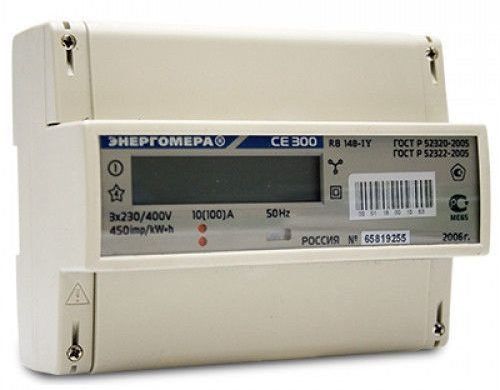 Energometer CE300 R31 043-J - a device with a liquid crystal display. You can connect it through a transformer and directly. The meter is equipped with a LED, is very sensitive to voltage drops, and is economical to maintain. Mounted on a DIN rail.