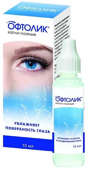The hit of many pharmacies is the drug Oftolik. It is excellent for people who suffer from lack of tear fluid, dry eyes and for prophylaxis after surgery. The active ingredients are polyvinyl alcohol and povidone. Do not be afraid of the word alcohol, as its main function is to protect the mucous membrane of the eyes by holding back tears. The components of Oftolik harmoniously create a protective environment for vision. The resulting film has a high density, envelops the eyeball in a quality manner and does not cause irritation. Doctors prescribe a medication for dry eye syndrome, pathology of the organs of vision, decreased secretion of tear fluid, as a prophylaxis against frequent sitting at the monitor and in other cases.