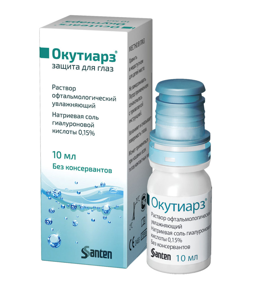 Ocutiars - eye drops with ultra-high molecular weight hyaluronic acid, to moisturize and eliminate dry eyes that occur periodically after prolonged visual stress.
