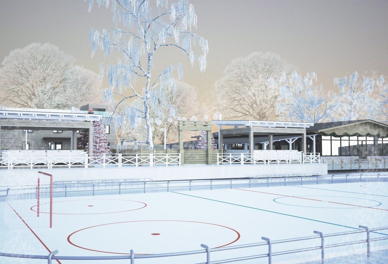 The area of the skating rinks is about a thousand square meters, which allows everyone to visit them. The adult ice rink is 600 meters long, and the children's ice rink is 400 meters.