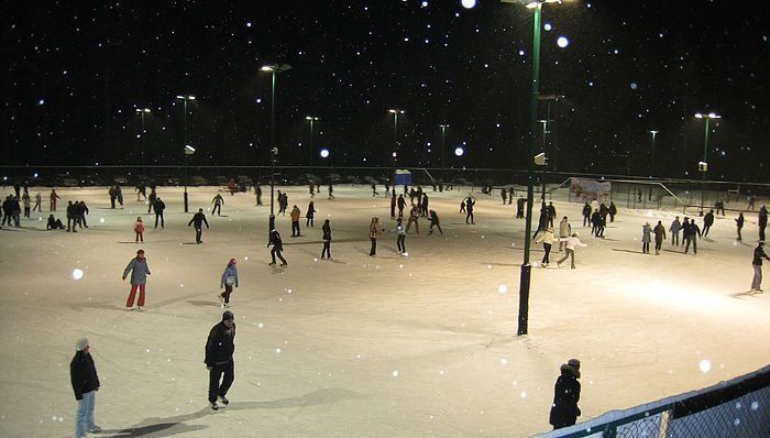 An excellent price that is affordable for many. This is the only paid ice rink that offers free skiing hours. That is why he is in demand among the townspeople. There are always a lot of people who want to ride. The state of the ice depends on the weather conditions.