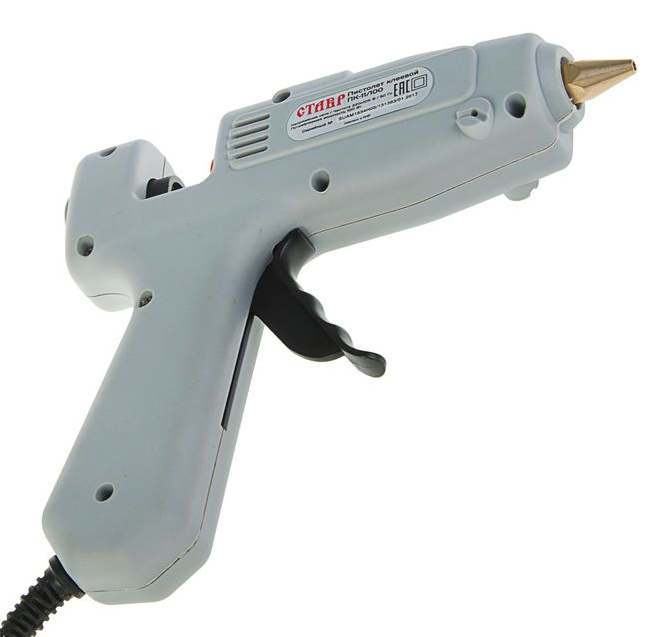The advantages of this model for home use are its price (about 600 rubles) and ease of use. Its power is 100 watts. The technical characteristics are enough to carry out simple repairs in the house, children's creativity, gluing shoes.