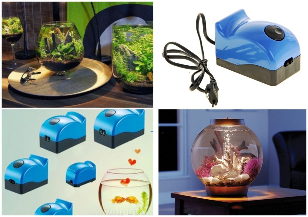 The bubbles that rise upward burst, destroying the dusty, bacterial film that constantly appears on the surface of the water. In addition to important vital signs for fish, aeration carries a decorative load: the bubble lift decorates the underwater world, pleasing the eye, moving the plants, forcing the inhabitants to move more actively. As a result, the load on the device is very responsible and significant: the health of the inhabitants of the bio-television set, the beauty of the hydro-world will only benefit from the presence of this installation in it. And it is easier to care for such a reservoir: the space becomes cleaner, fish and plants live longer, algae rotting processes do not occur.
