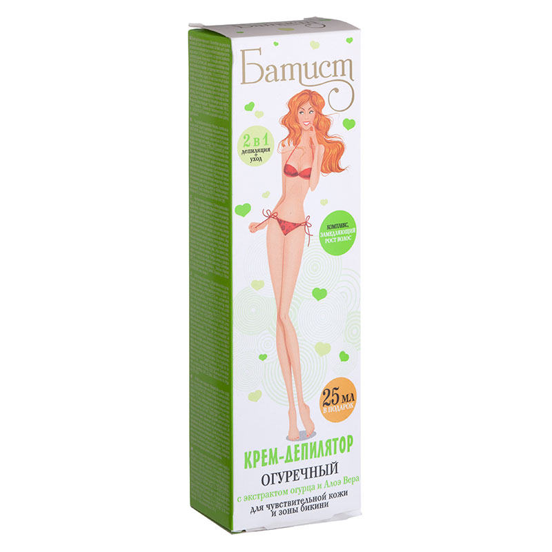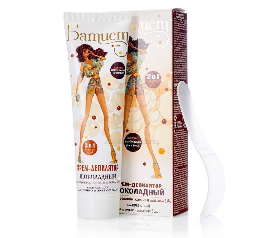 - Batiste (manufacturer - Russian Cosmetics).A popular budget series that includes not only depilatory creams, but also lotions to be applied to the skin after the procedure and products that slow down hair growth.