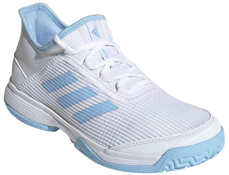 Children's tennis shoes. They are almost a complete copy of the same model for adults, but have an improved upper. A modified upper with ADIPRENE cushioning and Torsion System provides reliable support for your foot as you play. In addition, the mesh upper provides optimum climate and comfort.