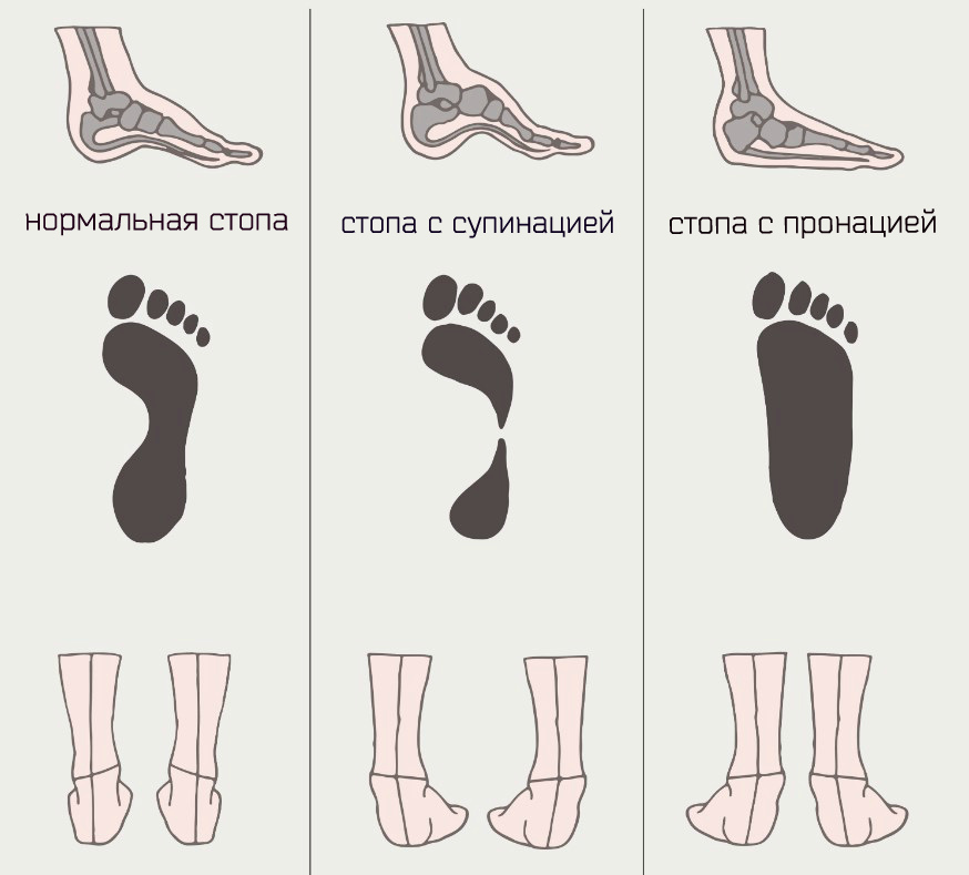 Distinguish between neutral (correct), excessive and insufficient pronation. Excessive pronation is better known as “flat feet,” in which the person steps more than necessary on the inside of the foot. In this case, the shoes should be with an instep support. With excessive pronation (supination), the opposite is true - the outer side is more involved. Therefore, there should be no instep support, and the outer side should be stronger.