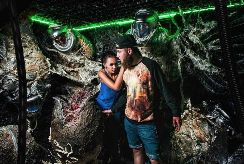 People celebrate the excellent scenery at this action - realistic cocoons of creatures made of architectural wax, silicone threads made of plasma, which foreign invaders have girded around the premises of biochemical laboratories, technically perfect costumes of station workers and believable mannequins of those who fell victim to aliens. The Russian Museum of Wax Figures - this is how you can metaphorically call all the decorations that are used at this perfomance.