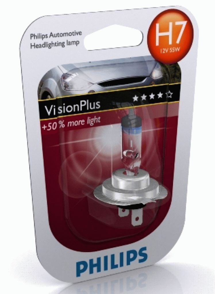In second place is the Philips H7 Vision Plus lamp, beloved by many drivers. This European brand is perfectly adapted to Russian conditions. Voltage 12 V, power 55 W. The main advantage of this light fixture is its high brightness, providing a large illumination area. High-quality brightness increases road safety. The color temperature is 3200 K. The average price is 950 rubles.