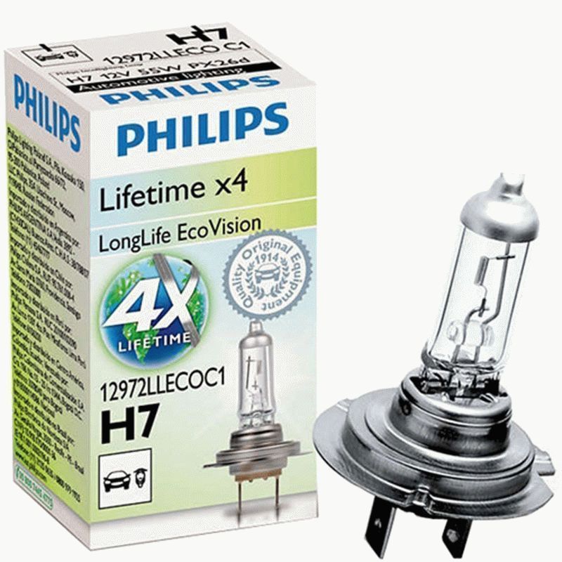 The Philips Longlife Ecovision car bulb for h7 cap is crafted from the ultimate quartz glass, featuring a Philips Quartz Glass UV filter. This enables the device to withstand strong gas pressure inside the bulb and serves as an excellent barrier against rapid evaporation of tungsten from the filament. Halogen Philips Longlife Ecovision has a luminous flux of 1500 lumens, which is great for both low and high beam, and against fog. The average price is 750 rubles.