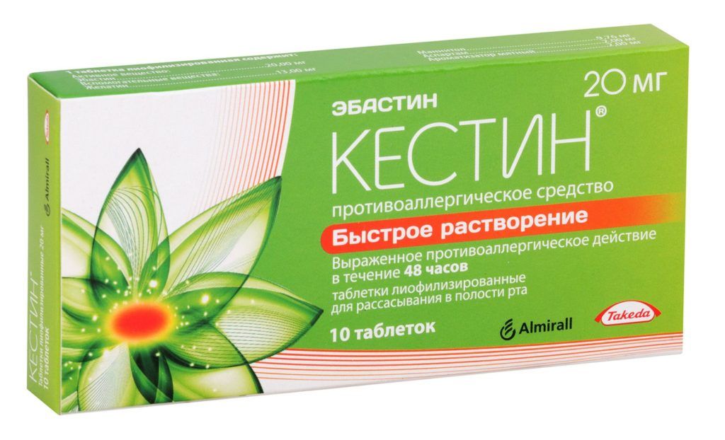 This drug is manufactured in Spain. The result of its reception begins to be felt in an hour, but the effect is felt for two days. Moreover, if you take the medicine in a row for 5 days, its effectiveness after cancellation remains for another 3 days. Kestin helps to eliminate the consequences of Quincke's edema, relieves of conjunctivitis, rhinitis, provoked by an allergy to bloom.