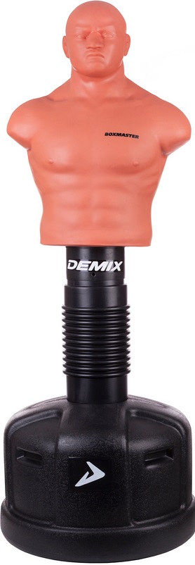 In the Sportmaster chain of stores you can buy a Demix Boxmaster striking trainer. It is designed as a torso with a head mounted on a base. The sparring partner turns out to be realistic, convenient, that you can pick up the height, thanks to the adjustable functionality. The Demix Boxmaster Pro is highly praised by those who practice boxing, martial arts, taekwondo and karate. The elastic filling of the product has shock-absorbing properties and health cannot be damaged during training. The base is filled with sand (weight up to 130 kg) or water (weight up to 100 kg). The simulator is used by professionals, amateurs, adults and children.