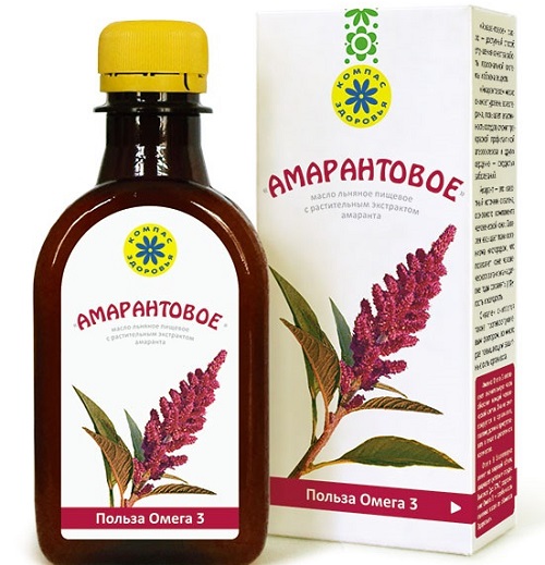 The Compass Health brand has a budgetary Amaranth extract in flaxseed oil. Amaranth inflorescences, combined with flaxseed oil extract, help to activate cellular respiration and release oxygen. The manufacturer promises that its product is able to protect against free radicals and prevent the formation of tumors. Also, the manufacturer's promises include resorption of scars and an increase in skin elasticity. The nutritional value is high, about 900 calories. The extract is recommended to be consumed with a small amount of food or separately, as a special “healing food”. Dosage: first 1 teaspoon twice a day, then gradually increase to 1 tablespoon twice a day. There may be a heaviness in the stomach or loose stools, but after five days the symptoms will disappear.